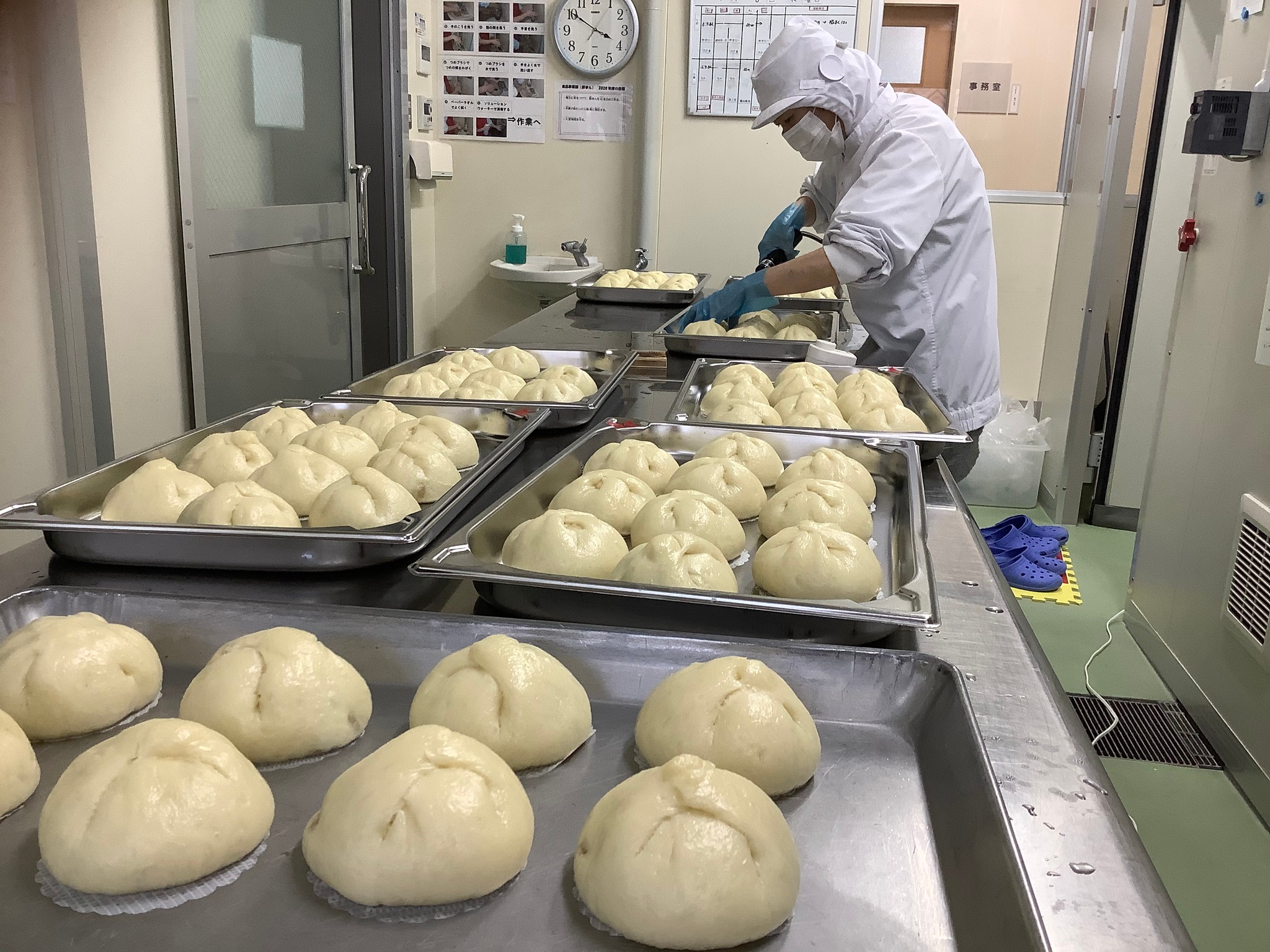 肉まんづくりをコツコツと行っています。